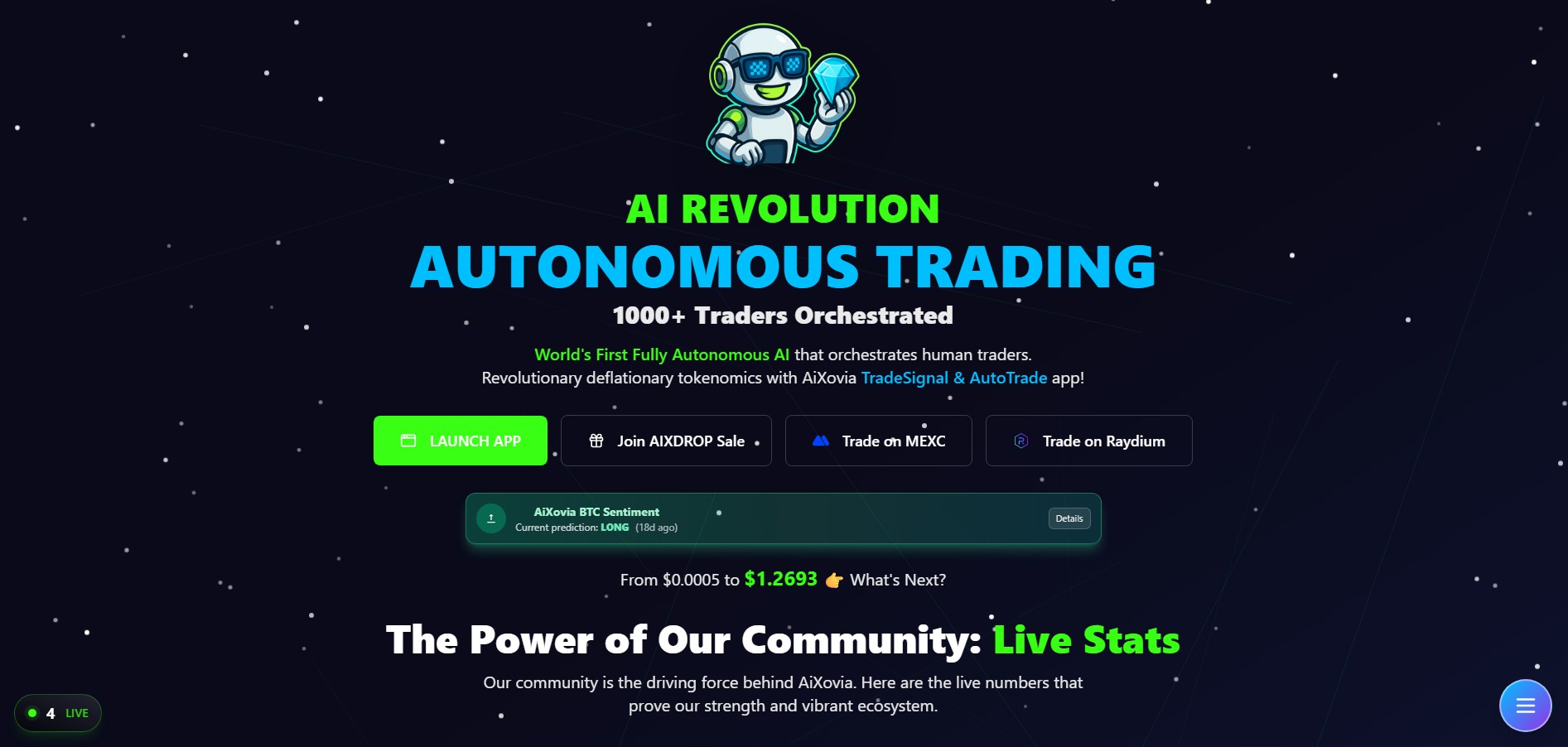AI Xovia is a Solana-based self-sustaining ecosystem built on a system designed to eliminate market manipulation. The project operates on a Hybrid Intelligence model that provides AI-powered trading signals for crypto traders and decentralized finance (DeFi) users.