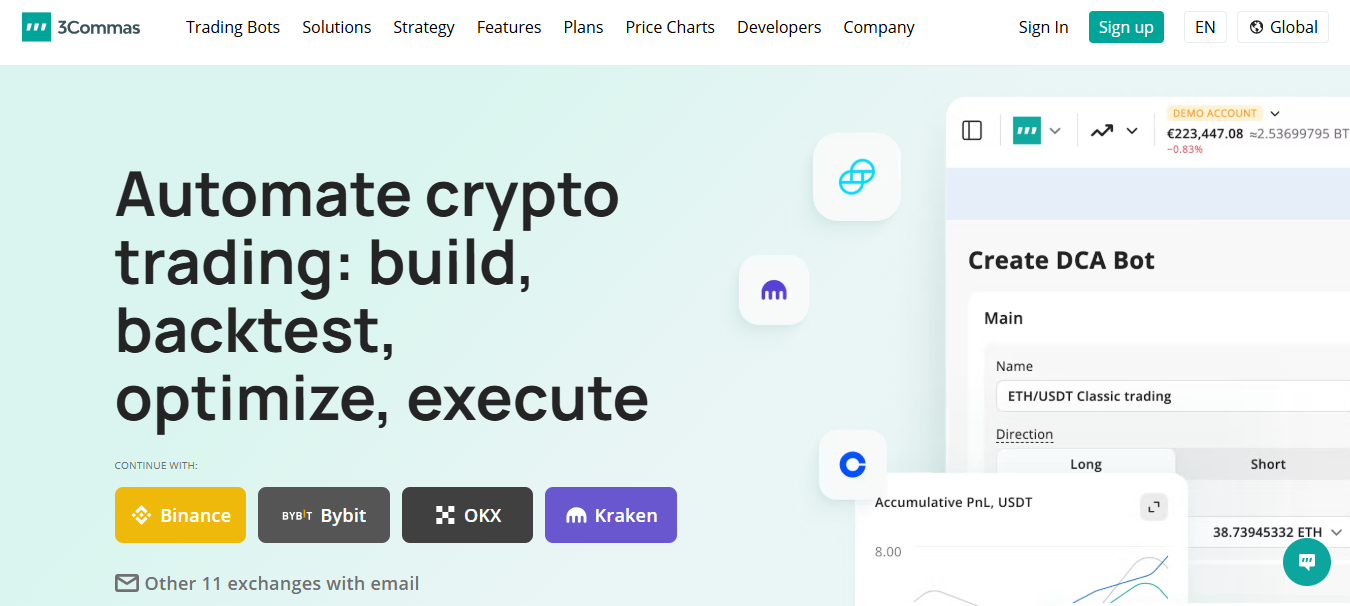 3Commas is a well-established crypto trading platform best known for its automated trading tools and smart portfolio management features. Through its copy trading function, users can mirror the strategies of successful traders while benefiting from built-in risk management tools, ensuring smarter and more consistent trading outcomes.
