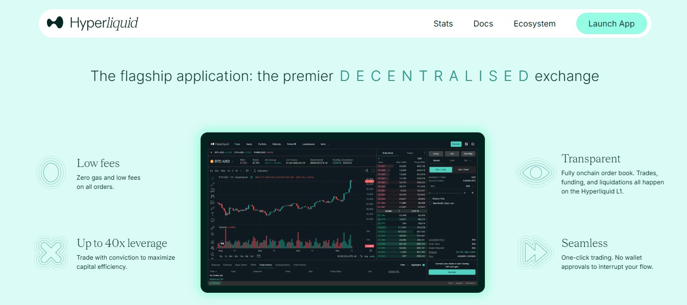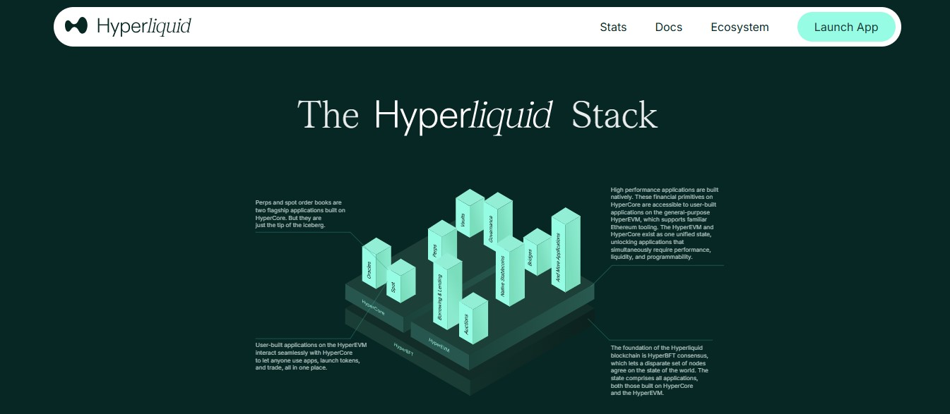 Hyperliquid was built to solve one of DeFi’s biggest challenges, which are scalability and user experience in on-chain trading. Unlike most DEXs that depend on existing blockchain infrastructures, it operates on its own Layer-1 blockchain optimised for high-speed order execution and deep liquidity. The platform’s HyperEVM, a next-generation virtual machine, provides faster transaction processing and efficient order matching while keeping all trades verifiable on-chain.