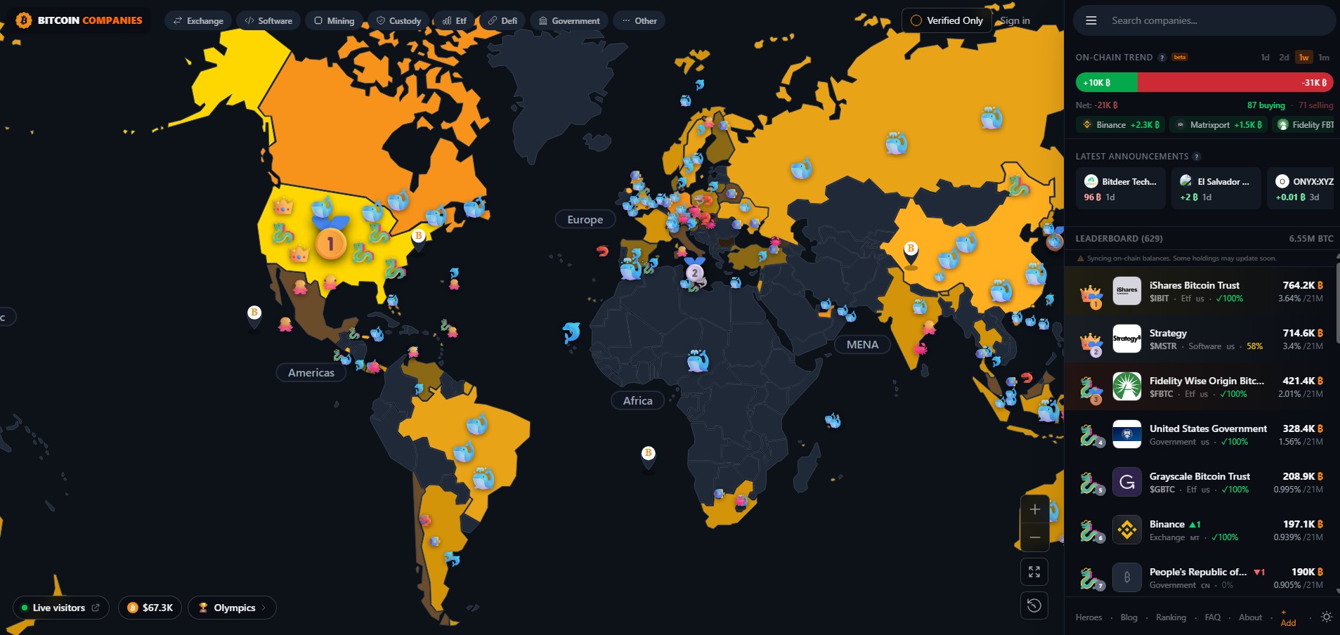 Stephane: Always meant it to be public. I was checking bitcointreasuries.net almost daily to see if companies were buying or selling. It's a great signal for Bitcoin adoption. But the data was just... tables. No map, no visual way to explore it. Felt like something was missing.